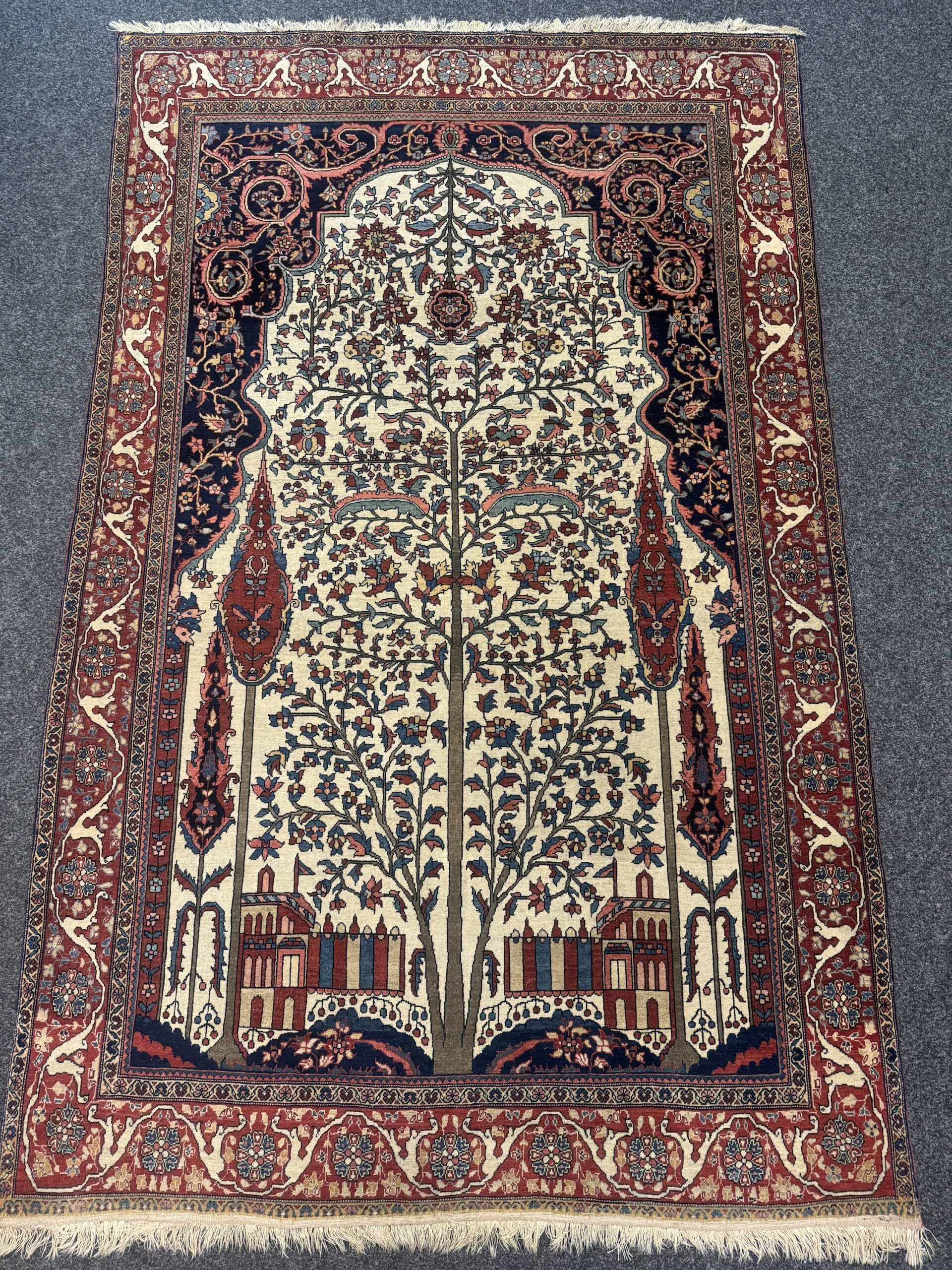 • Design & Symbolik: Das Lebensbaum-Motiv gilt in der persischen Kunst als Sinnbild für Leben, Wachstum und Ewigkeit. In dieser Ausführung mit feinsten Blüten und verzweigten Ästen entsteht eine nahezu poetische Bildwirkung.
