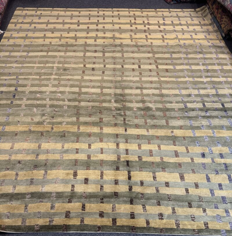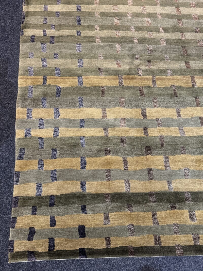 • Kunsthandwerk & Nachhaltigkeit: Jede Phase – vom Scheren der Wolle, Spinnen, Färben bis zum finalen Knüpfvorgang – erfolgte in Handarbeit unter höchsten Qualitätsansprüchen.